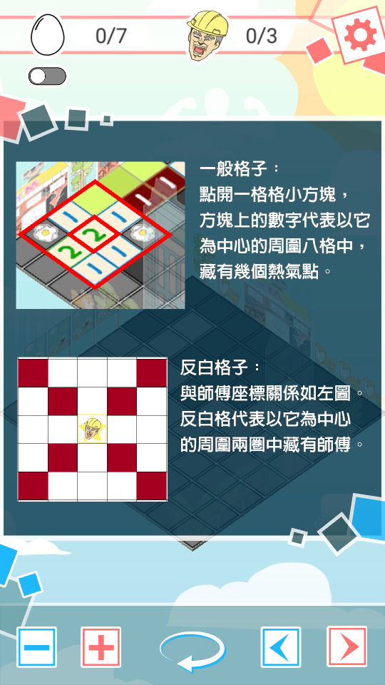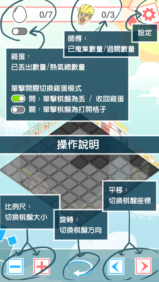玩家目標:報復性丟蛋並翻開棋盤地圖找出冷氣師傅!
