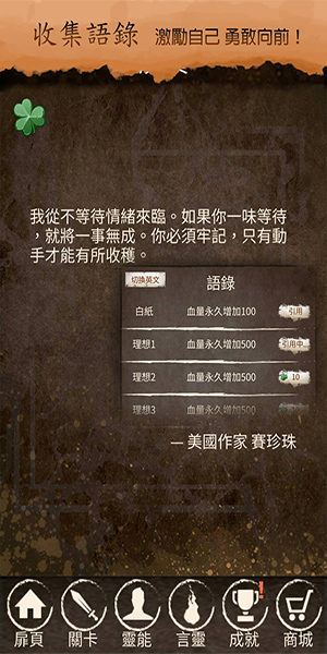 引導式的單字學習,有別以往需一次記住所有字母的枯燥乏味。主題關聯單字,讓你一次背好背滿。真人發音,讓你印象更深刻。擊敗怪物提升技能,等同自己也向上一級。收集語錄,將各種不同感悟寫進自己一頁裡!