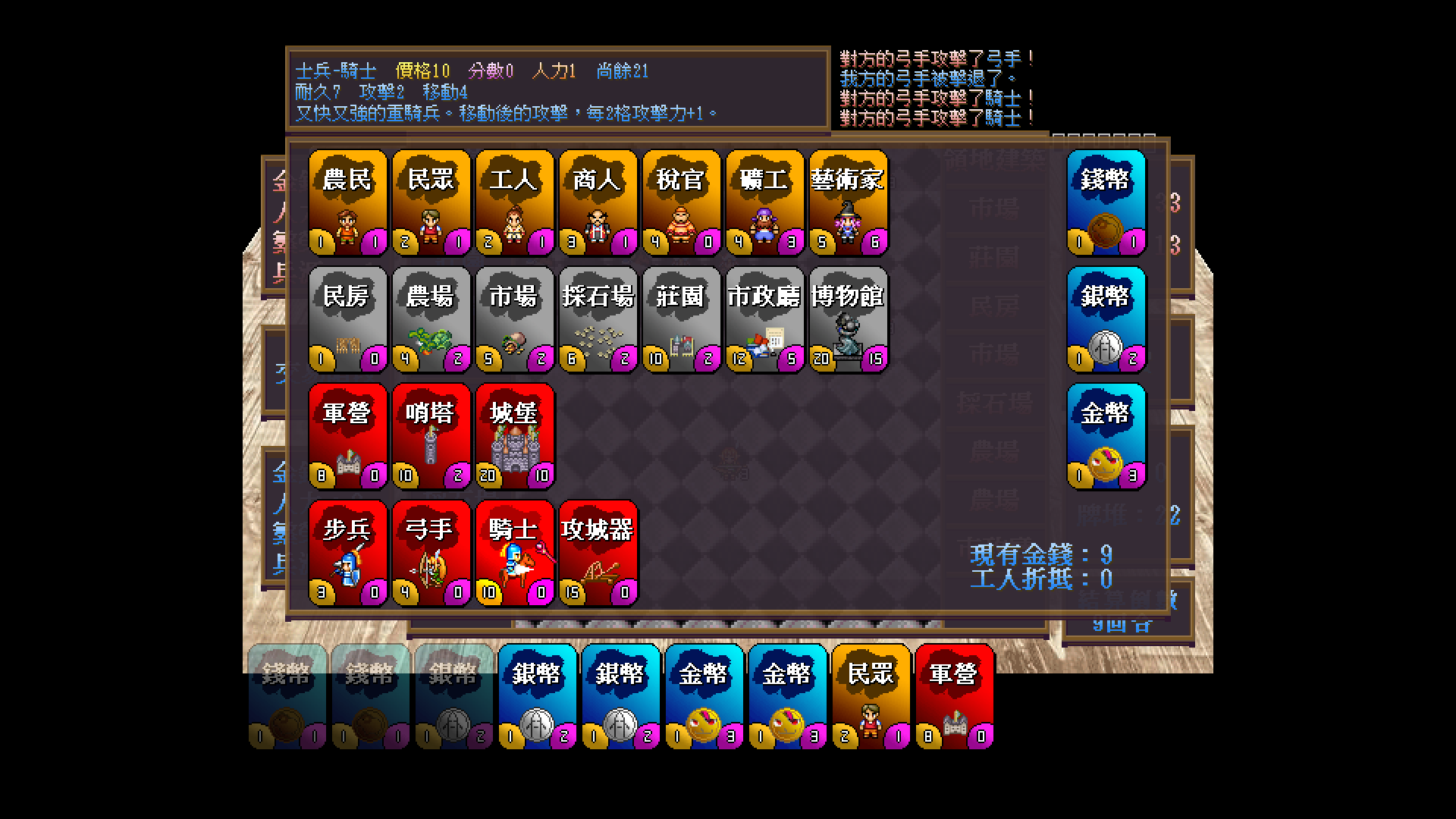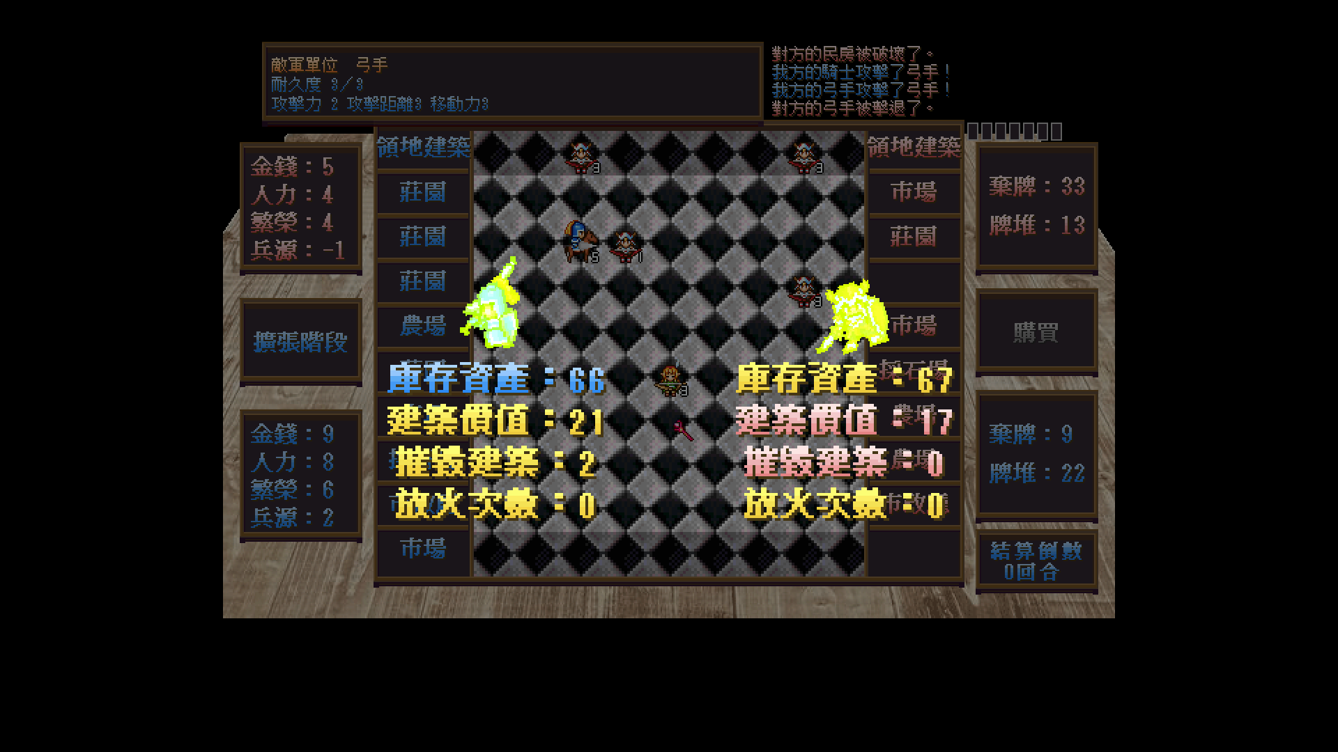 本遊戲的目的在於充實國庫,抵禦對方來襲的同時獲得高分。