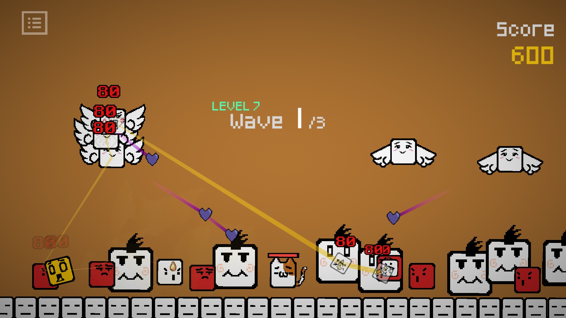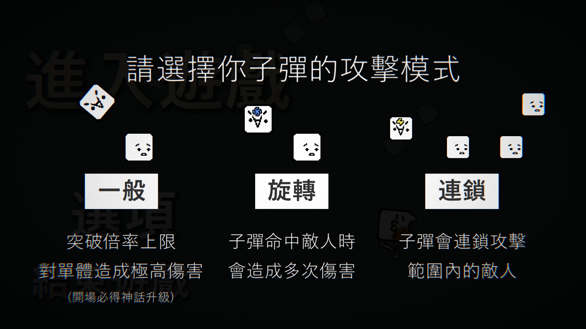 玩家可以選擇不同攻擊模式的方塊,並在通關的過程中,從隨機出現的兩項升級中獲得其中一項,以各式各樣的升級來擊退關卡中出現的敵人和魔王。