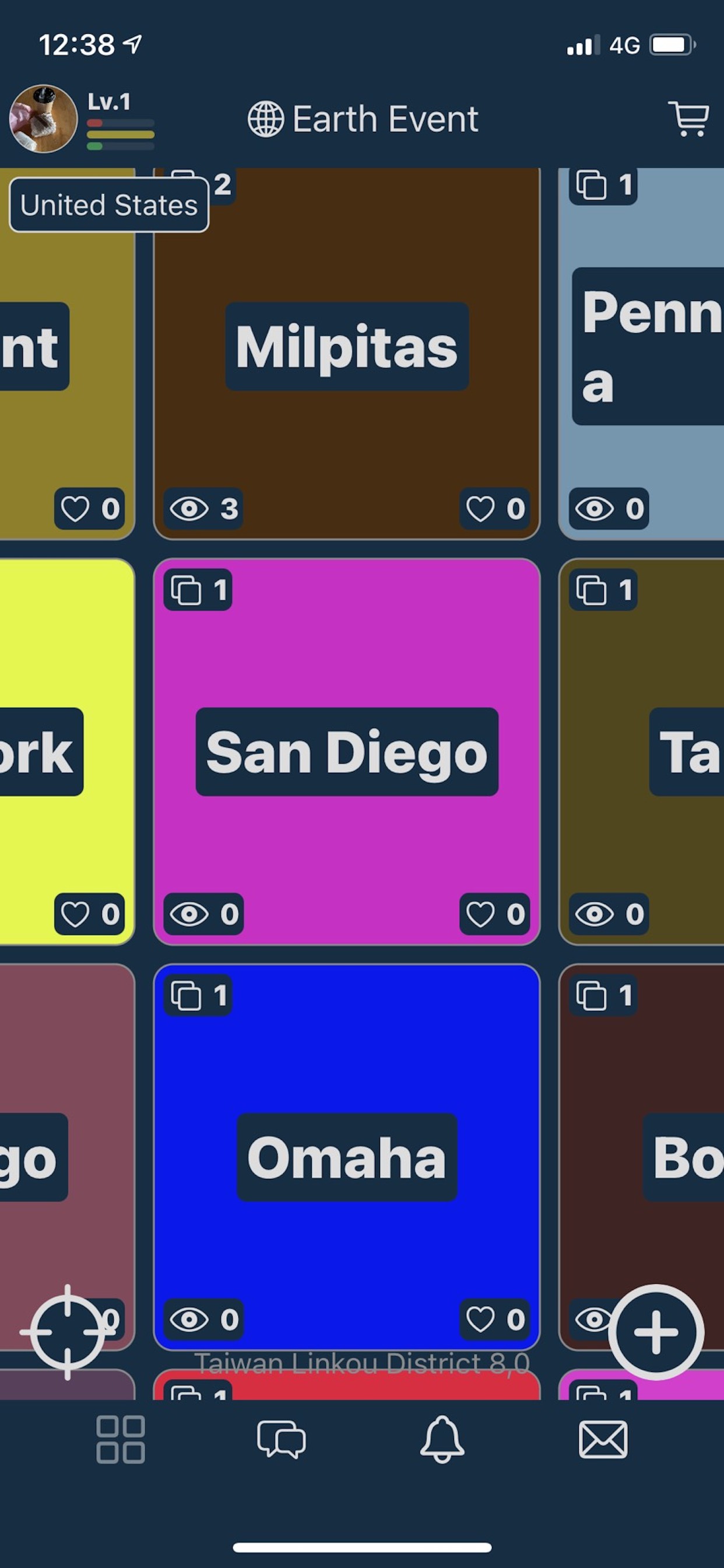 地圖:由一個個正方形的事件方塊排組成的2D平面世界,排列方式取決於該事件 被創造時的地理位置。