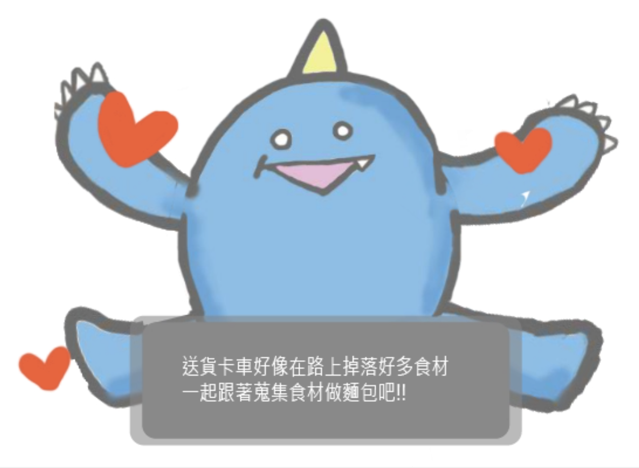 主要是描寫小怪獸肚子餓,所以在森林蒐集材料,要去麵包坊製作麵包的過程。